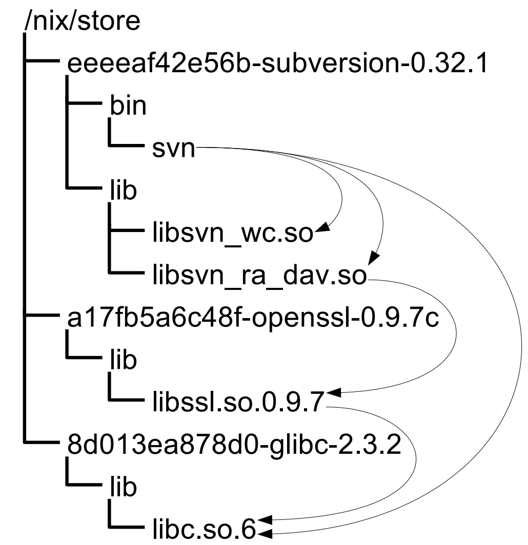 nix 不会从除了软件包所声明的依赖以外的其他任何地方寻找依赖,因此如果构建的软件依赖“不全”,软件将不会正确运行。这保证了所有成功构建的软件它们的依赖都是完全的。