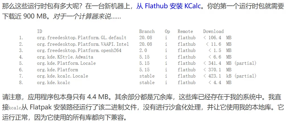 flatpak 通过对多个应用程序使用的库和其他文件进行重复数据删除来节省存储空间。