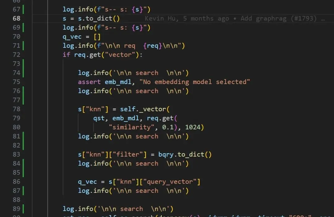 def _vector(self, txt, emb_mdl, sim=0.8, topk=10): log.info(f"\n\n _vector \n\n") log.info(f"\n\n emb_mdl {emb_mdl} \n\n") if emb_mdl is None: raise ValueError("Embedding model (emb_mdl) cannot be None") try: qv, c = emb_mdl.encode_queries(txt) except AttributeError as e: raise AttributeError(f"Invalid embedding model: {e}") log.info(f"\n\n【QV】:{qv} \n\n") log.info(f"\n\n【C】:{c} \n\n") res = { "field": "q_%d_vec" % len(qv), "k": topk, "similarity": sim, "num_candidates": topk * 2, "query_vector": [float(v) for v in qv] } log.info(f"\n\n【RES】:{res} \n\n") return res注:跑下这个方法,看能不能捕捉到异常。应该不可以,因为没有返回。找到了一个找异常的方法。