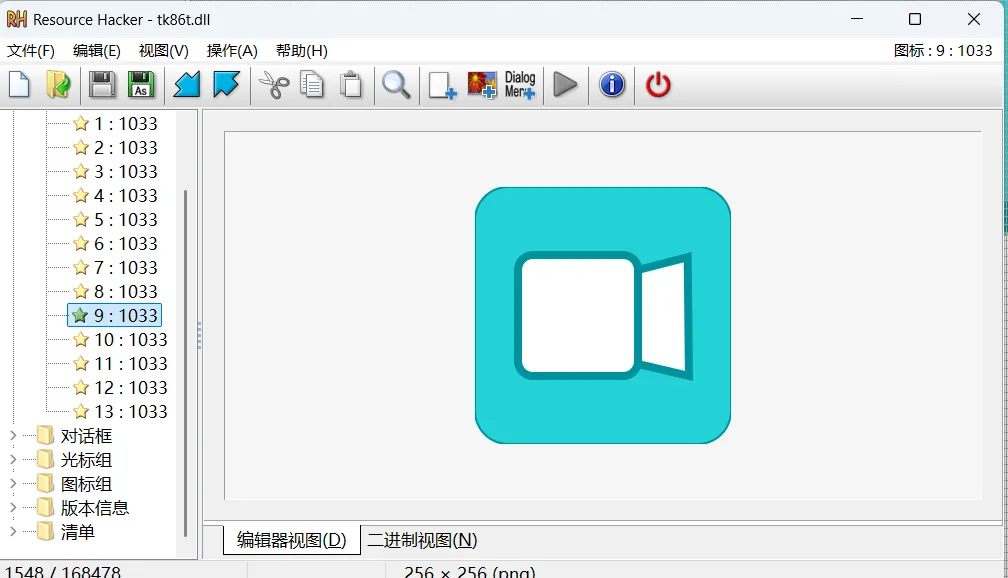 这是全网少有人敢细说的核心操作,也是唯一能彻底干掉羽毛图标的方法,步骤拆解到新手都能懂:Axialis IconWorkshop 6.6.0.6 中文版:制作标准 ICO 图标(必须包含 13 种尺寸,少一个都不行);Resource Hacker:编辑 dll/exe 的图标资源(免费无广告,打包必备);PS:制作基础 PNG 图标(透明背景,建议 64×64/128×128 尺寸)。步骤 1:制作 13 尺寸标准 ICO 图标(避坑关键)用 PS 做好录屏专属 PNG 图标(比如以 “录” 字为核心,结合电影胶片元素,辨识度拉满);打开 Axialis IconWorkshop新建256*256,再导入 PNG 文件;一键生成 13 个标准尺寸(从 16×16 到 256×256 全覆盖,Windows 系统识别的核心);导出为.ico格式,保存到桌面备用(命名简单,比如recorder.ico)。⚠️ 重点:必须是多尺寸 ICO,单张 PNG 改后缀、少尺寸,替换直接失败!这个文件是 Tkinter 的核心,先备份再操作,避免出问题:路径:C:\Users\你的用户名\AppData\Local\Programs\Python\Python312\DLLs\tk86t.dll;复制一份到桌面,命名为tk86t_备份.dll(出问题直接还原,保住 Python 环境)。步骤 3:用 Resource Hacker 修改 tk86t.dll打开 Resource Hacker,点击「File」→「Open」,选中备份的tk86t.dll;左侧找到「Icon」目录并展开,能看到默认的羽毛图标(通常是 1 号图标);右键点击羽毛图标→「Replace Icon」,选择步骤 1 做好的 13 尺寸 ICO;点击「File」→「Save As」,保存为新的tk86t.dll(覆盖前确认备份完成)。关闭所有 Python 程序、PyInstaller 终端、已打包的 exe(确保文件不被占用);把修改后的tk86t.dll复制到Python312\DLLs\目录,覆盖原文件;验证:打开 Python IDLE,若 IDLE 窗口图标变成你的自定义图标,说明替换成功。pyinstaller -F -w -i recorder.ico --add-data "D:\hua\123\ffmpeg.exe;." screen_recorder.py打包完成后,双击 exe 运行:窗口左上角、任务栏再也没有羽毛图标,全程显示你的自定义图标!✅ 额外提醒:打包完成后,建议把tk86t.dll还原成备份文件,避免影响其他 Tkinter 程序,仅在打包特定软件时临时替换。四、新手避坑指南(少走 3 小时弯路)
