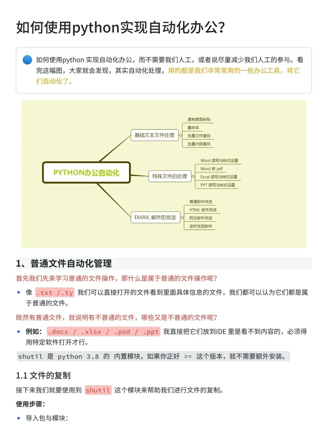 众所周知数据分析师需要不断的汇总数据,有很多重复性操作,而这个过程是极其耗费时间的,大大降低我们的工作效率-给大家分享几个日常办公python自动化代码,来提高我们的工作效率(附带案例)包括:常用自动化库、Excel自动化、PDF自动化、Word自动化、PPT自动化、文件管理自动化-完整文档放在知识库了,希望对大家有所帮助~