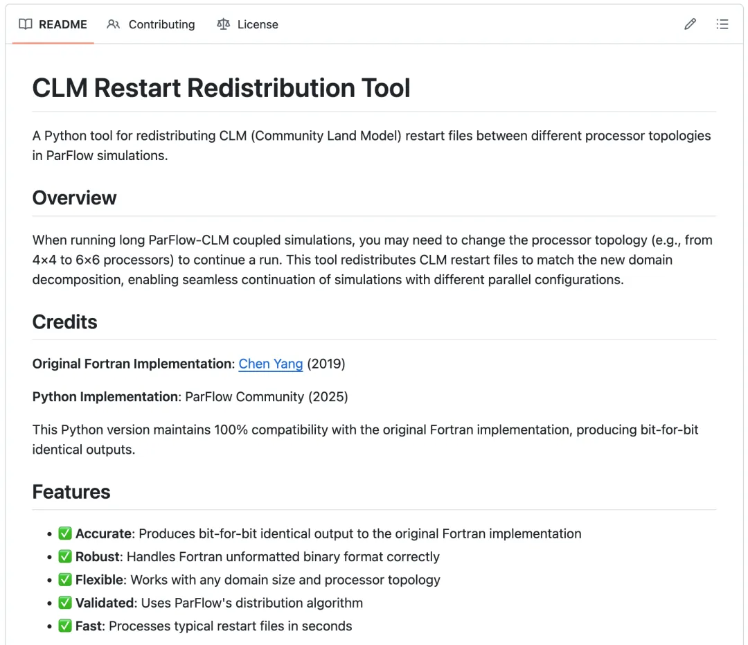 本工具旨在解决这一问题:可以对ParFlow-CLM的restart文件进行重新分配,从而避免冷启动整个模拟过程。