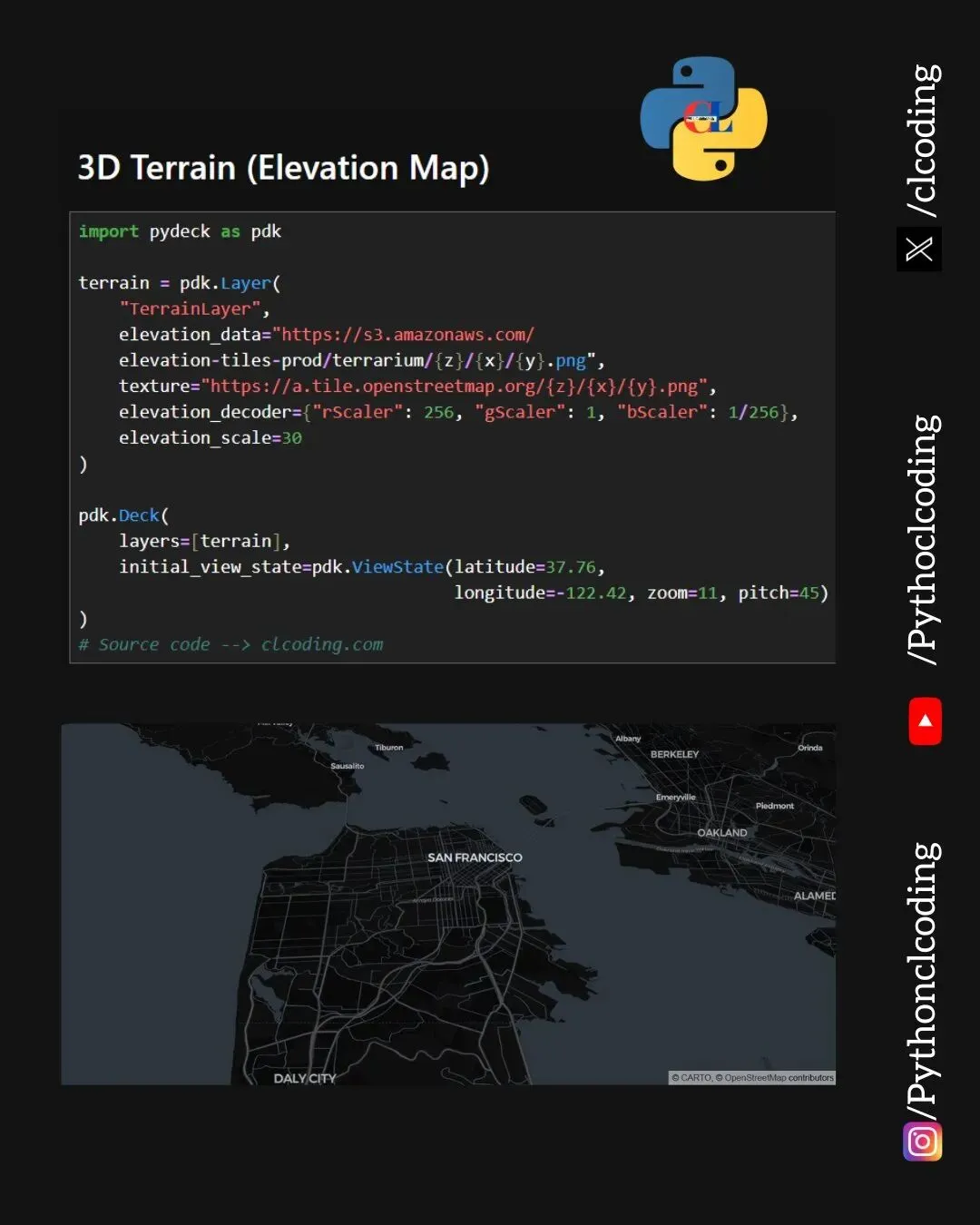 你是否想过,用Python轻松创建一个可交互的3D地形图?今天,我将带你用pydeck库实现这个目标——只需十几行代码,就能生成一个基于真实地理数据的立体高程地图,让你像上帝视角一样俯瞰山川起伏。