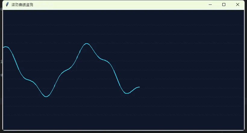 import tkinter as tkfrom collections import dequeimport mathclassSmoothScrollCurve:def__init__(self, master, max_points=500):self.master = masterself.max_points = max_pointsself.data = deque(maxlen=max_points)# 关键:用更大的虚拟画布self.canvas_width = 1200# 比窗口宽self.view_width = 800# 实际显示宽度self.canvas = tk.Canvas( master, width=self.view_width, height=400, bg='#0f172a', scrollregion=(0, 0, self.canvas_width, 400) )self.canvas.pack()self.padding = 50self.plot_height = 300self.y_min, self.y_max = 0, 100self.point_spacing = 3# 每个点间隔3像素self.current_x = self.paddingself._init_grid()def_init_grid(self):"""画网格线(看着专业)"""for i inrange(11): y = self.padding + i * 30self.canvas.create_line(0, y, self.canvas_width, y, fill='#1e293b', dash=(2, 4) )defadd_data(self, value):self.data.append(value)iflen(self.data) < 2:self.current_x += self.point_spacingreturn# 计算Y坐标 y1 = self.padding + self.plot_height * (1 - (self.data[-2] - self.y_min) / (self.y_max - self.y_min)) y2 = self.padding + self.plot_height * (1 - (self.data[-1] - self.y_min) / (self.y_max - self.y_min))# 画线self.canvas.create_line(self.current_x - self.point_spacing, y1,self.current_x, y2, fill='#22d3ee', width=2, smooth=True )self.current_x += self.point_spacing# 🌟关键:自动滚动Canvasifself.current_x > self.view_width - self.padding:self.canvas.xview_scroll(1, 'units')# 测试代码root = tk.Tk()root.title("滚动曲线监测")curve = SmoothScrollCurve(root)defgenerate_wave():"""生成模拟的压力波动数据"""import time t = time.time() value = 50 + 25 * math.sin(t * 2) + 5 * math.sin(t * 7) curve.add_data(value) root.after(30, generate_wave)generate_wave()root.mainloop()