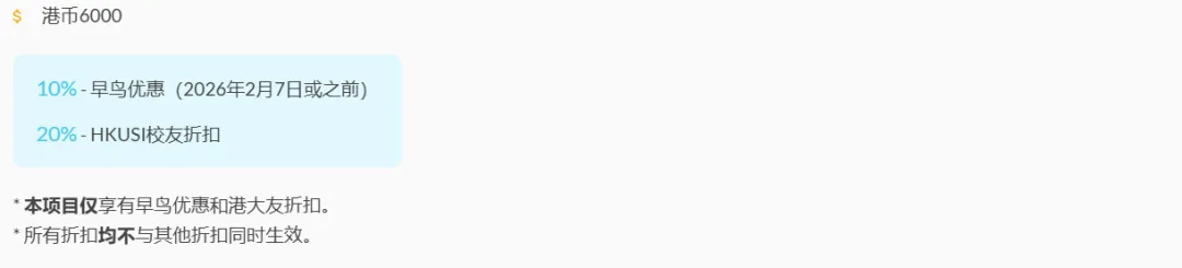 五、申请截止日期2026年2月7日(早鸟优惠10%)2026年3月21日(非本地)2026年5月31日(本地申请)