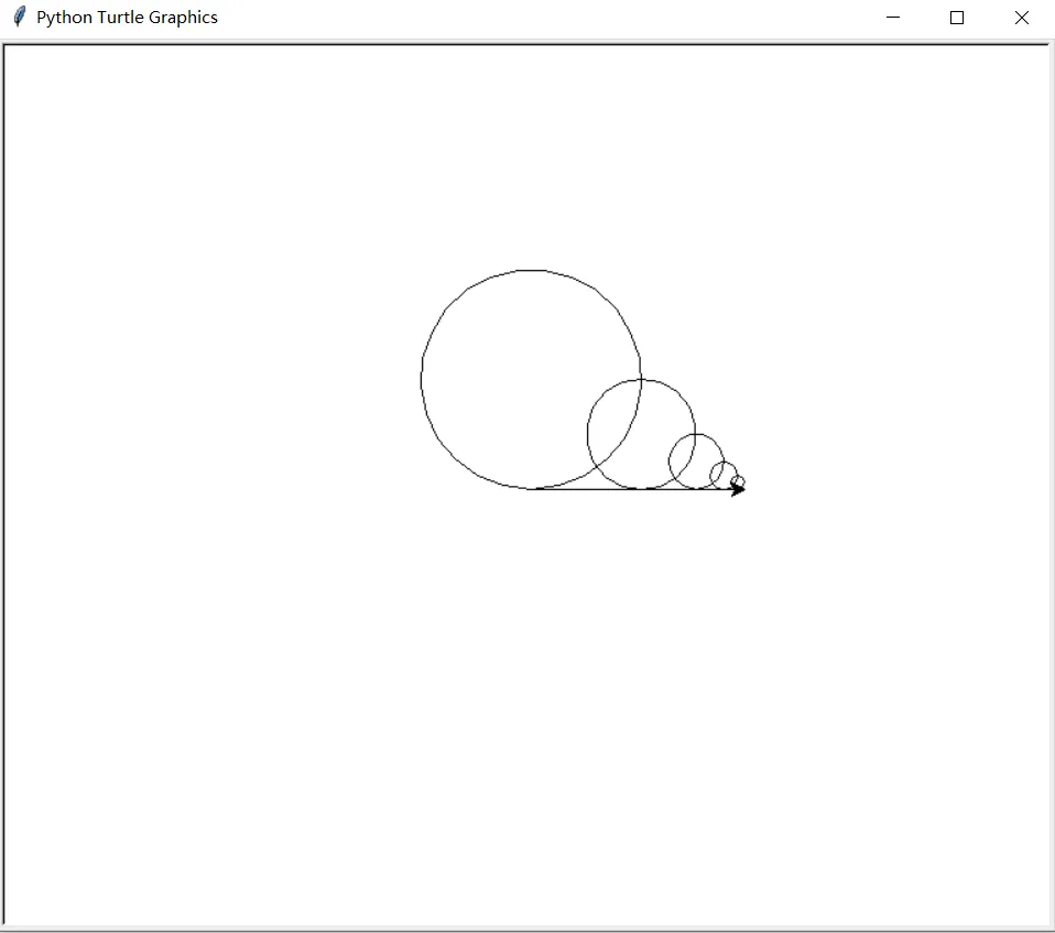 import turtle as mypenfor x in [80,40,20,10,5]: mypen.circle(x) #绘制半径为x的圆 mypen.forward(x) #向前移动x像素,让圆错开mypen.done()