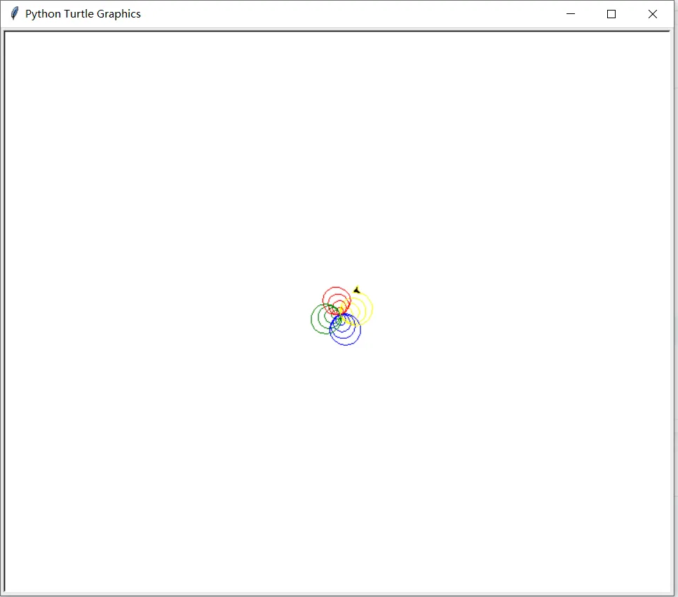 import turtlet = turtle.Pen()turtle.bgcolor("white") # 设置白色背景colors = ["red","green","blue","yellow"] # 颜色列表for x in range(100): t.pencolor(colors[x%4]) # 循环使用4种颜色 t.circle(x) # 半径逐渐增大 t.left(91) # 每次旋转91度,形成螺旋效果