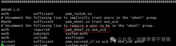# 修改前备份cp /etc/pam.d/su /etc/pam.d/su_bakvim /etc/pam.d/su# 添加auth sufficient pam_rootok.soauth required pam_wheel.so use_uid# 将允许su的用户加入wheel组usermod -G wheel $username