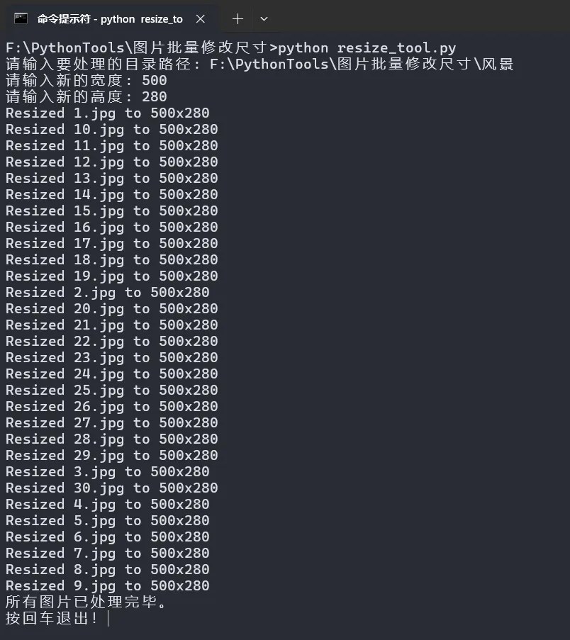 运行脚本:在命令行执行 python resize_tool.py