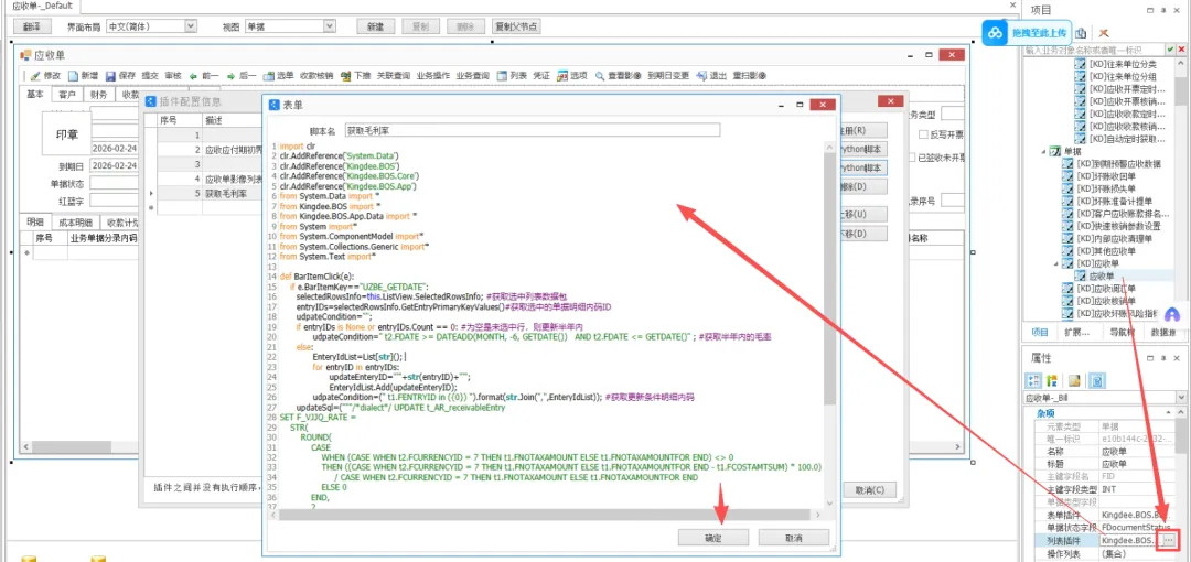 本次案例以应收单为例,当然你可以放到销售出库单和退货单,这个可以根据实际的业务需求来实现,做这个功能的背景是,应收会计需要知道每个商品的毛利率,来统计相关财务利润报表,展现相关产品的利润指标,交由上级领导或者老板进行查阅。大概思路是,通过按钮事件BarItemClick调用sql语句更新毛利率,支持手工点击获取全部毛利率,或者勾选需要获取毛利率的明细行。接下来废话不多说,直接上干货。