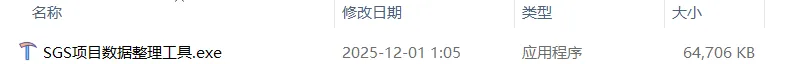 - • 在发布包中找到 「SGS项目数据整理工具.exe」,双击运行即可。