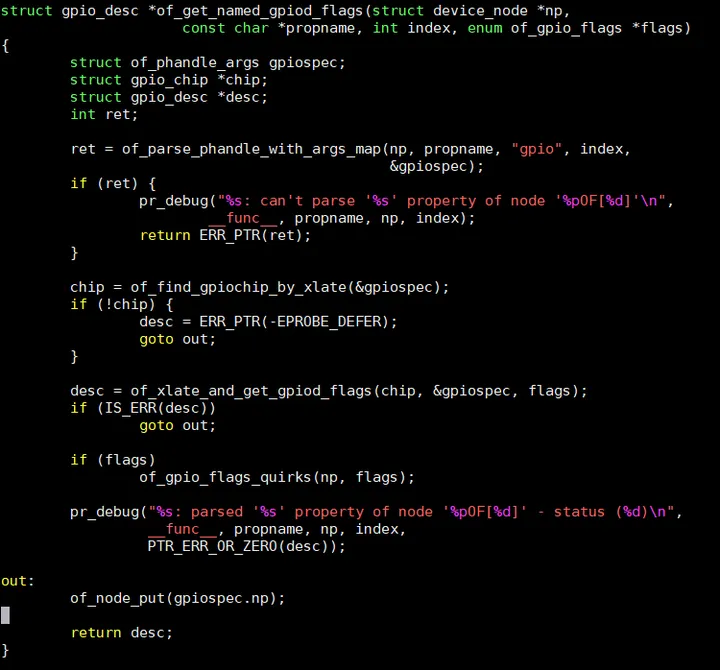 先通过of_get_named_gpio_flags获取设备树中的配置信息指定某一个gpio_pin