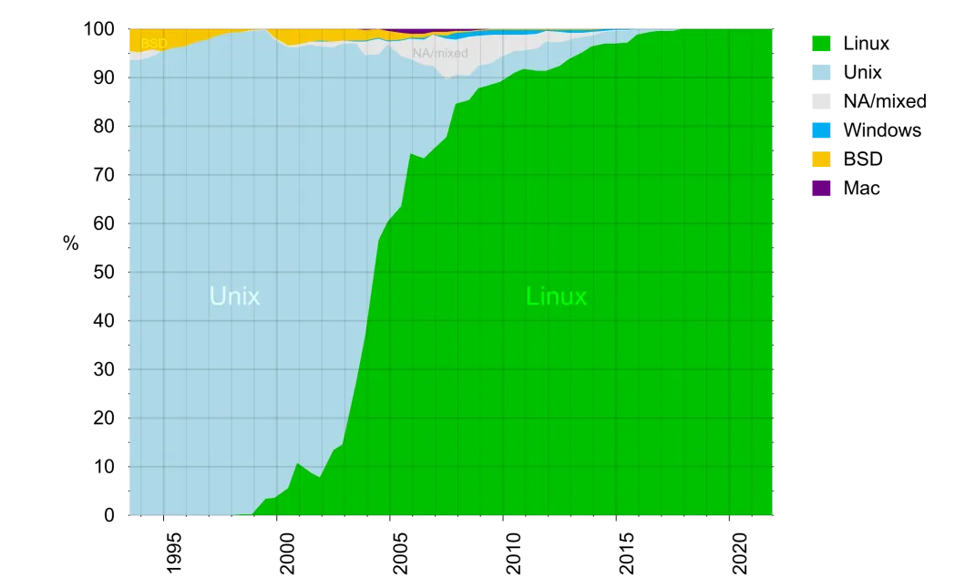 Linux操作系统,跑在全世界所有的超级计算机上。