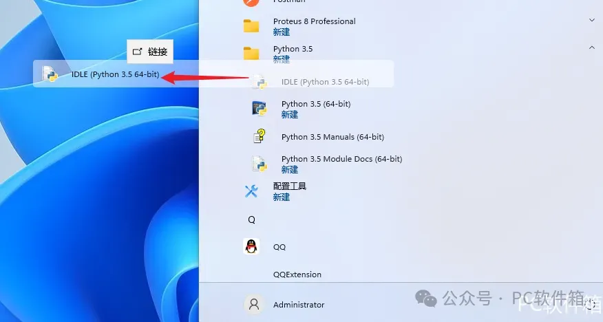 10.双击【IDLE (Python 3.5-bit)】图标启动软件。