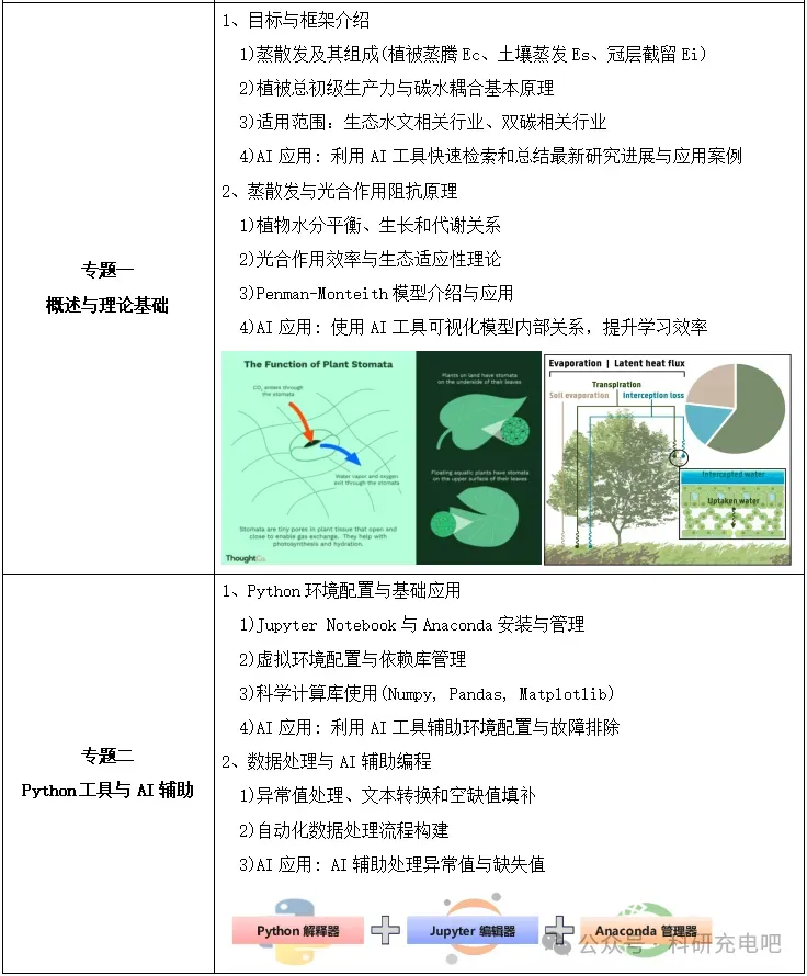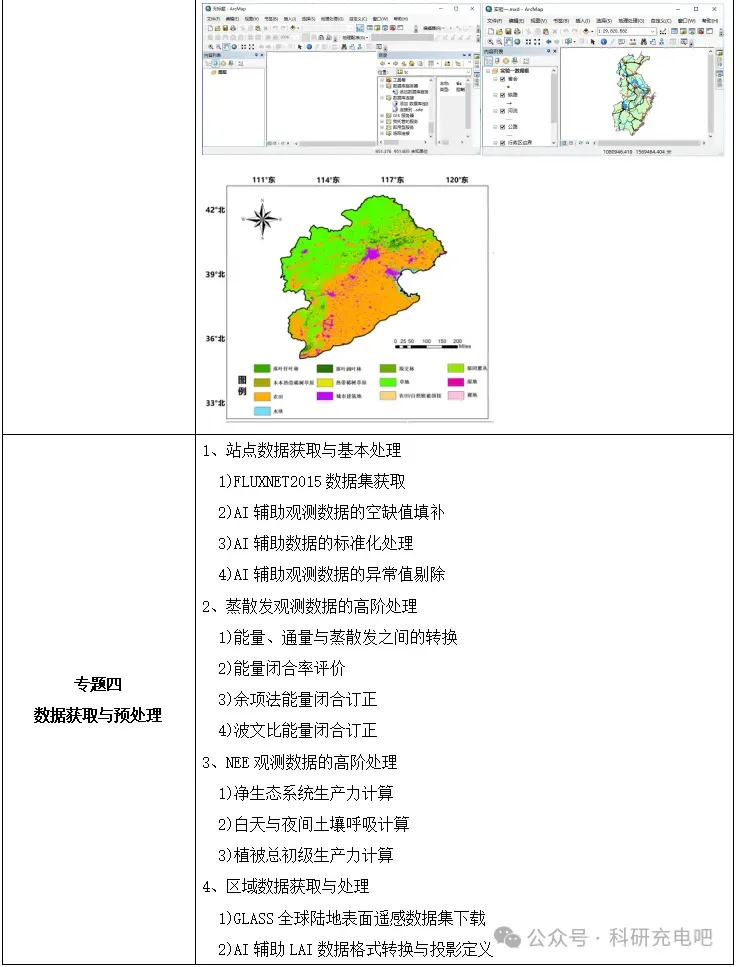 本课程结合Python编程与ArcGIS工具,通过AI辅助方法实现蒸散发与植被总初级生产力估算。学习国际流行的Penman-Monteith模型,掌握数据获取、处理、分析和可视化全流程,培养学员在生态水文与双碳领域的实践应用能力。通过DeepSeek、豆包等AI工具辅助代码编写和数据处理,大幅提高科研和分析效率。