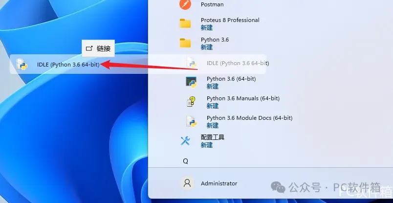10.双击【IDLE (Python 3.6-bit)】图标启动软件。
