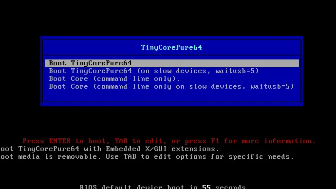 首先TinyCore Linux的镜像就非常的小,我下载了一个x86的64位镜像大概41M左右,比起现在大多数2个G以上的安装镜像,真可谓小巫见大巫。
