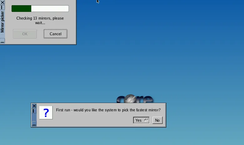 首次开启,支持选择软件仓库镜像,默认选择速度最快的镜像,这里点击yes以后,会对大量的镜像进行速度测试,然后确认一个最快的。
