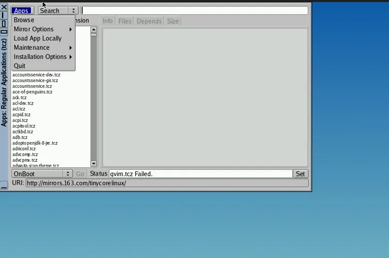 手中设置的方法并不复杂,只要在终端内,通过自带的vi编辑器修改配置文件/opt/tcemirror文件即可。
