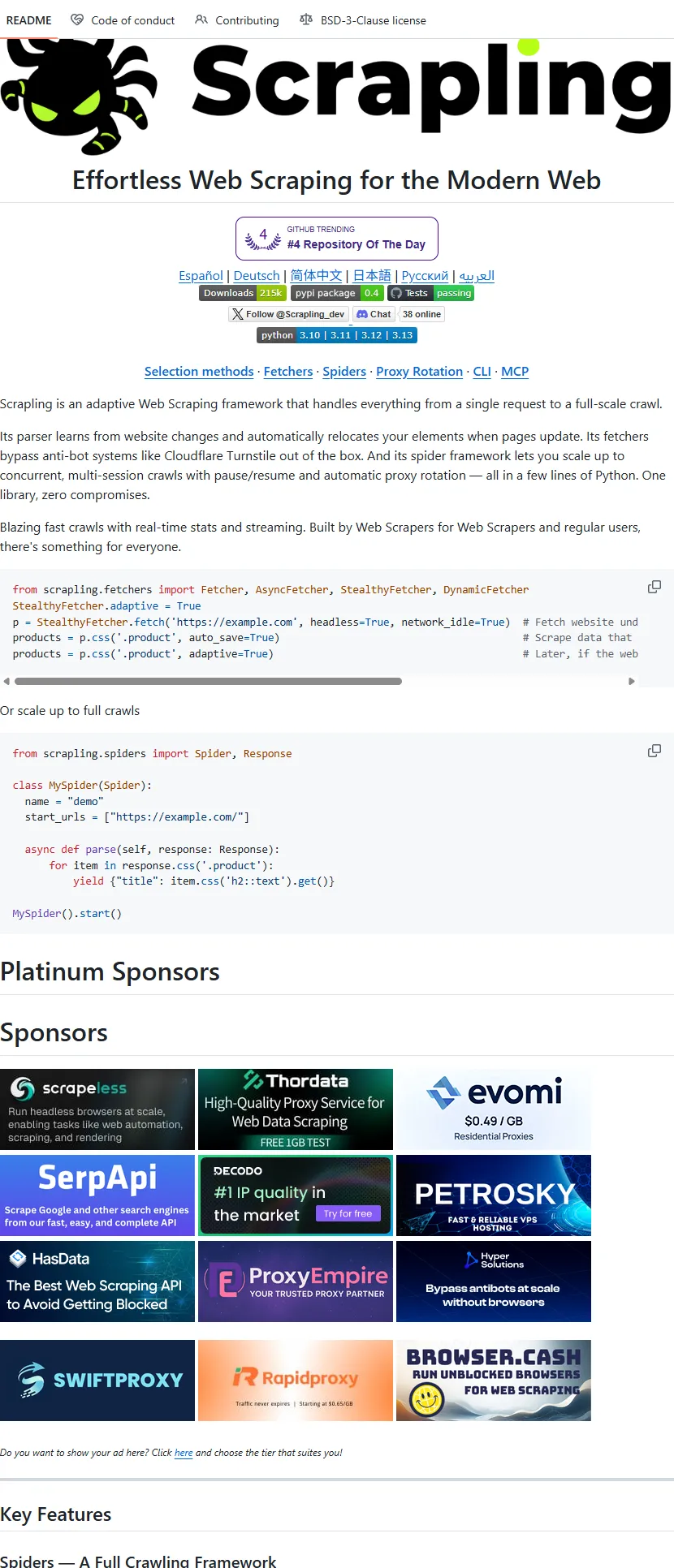 🔗 https://github.com/D4Vinci/Scrapling