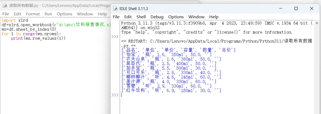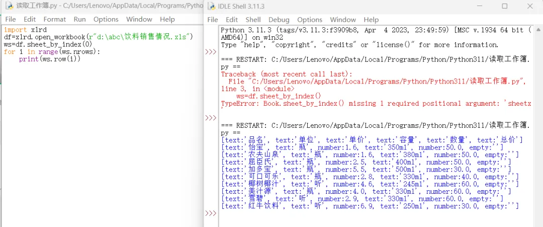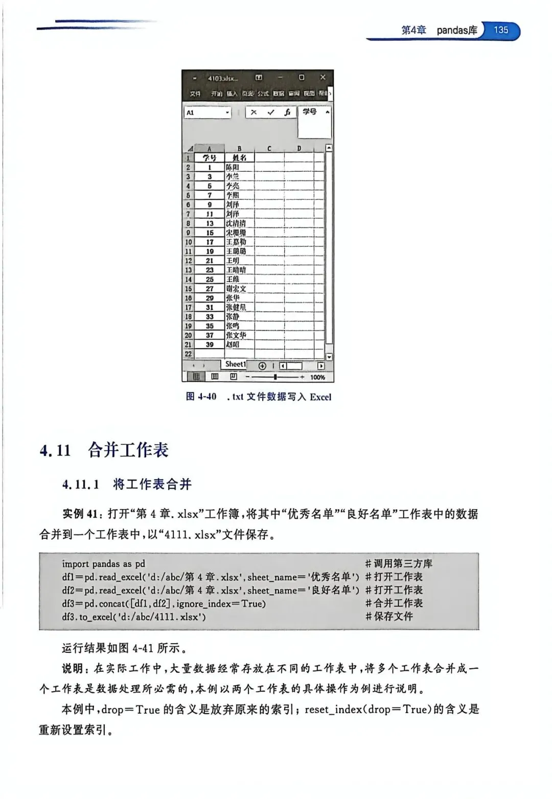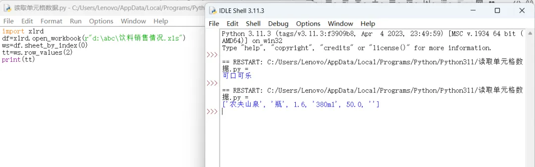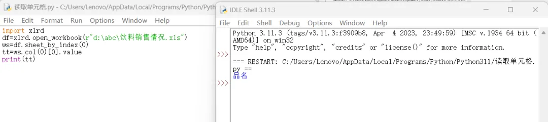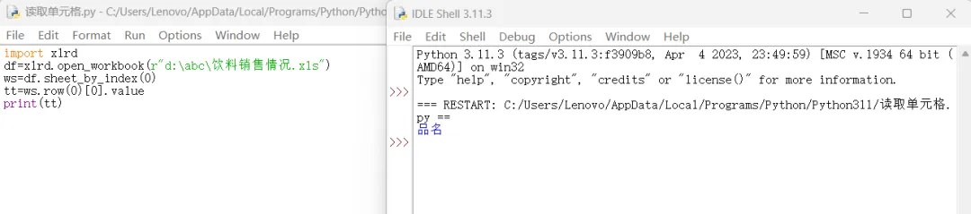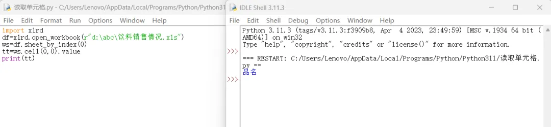 (2) xlrd库是用于读取Excel文件的第三方库,也称为外部库,用于实现工作簿的读取。本例没有涉及。