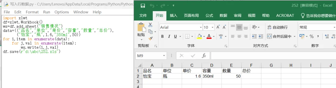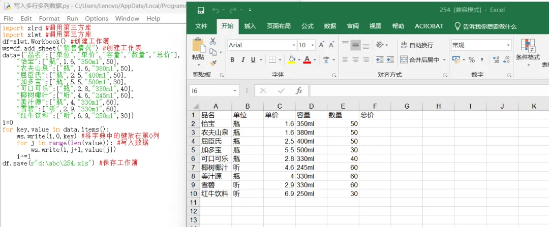 说明:将大批量数据写入 Excel 文件需要借助字典工具。