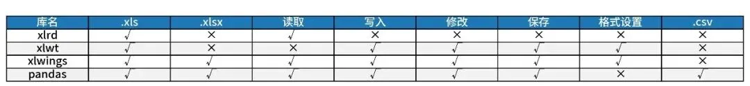 (1)老式格式专用:xlrd 和 xlwt 仅支持 .xls 格式,且分别为“只读”和“只写/改”的单行道工具。