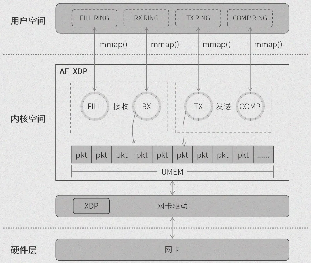 AF_XDP 之所以能够在网络数据处理领域展现出卓越的性能,背后离不开一系列精心设计的底层技术支撑。这些技术就像是隐藏在幕后的 “超级引擎”,为 AF_XDP 的高效运行提供了源源不断的动力。