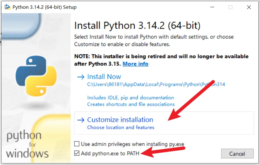 运行安装程序时,务必勾选 “Add Python to PATH”,这样能自动配置环境变量。