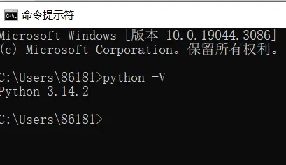 打开cmd 输入python -V 测试是否安装成功