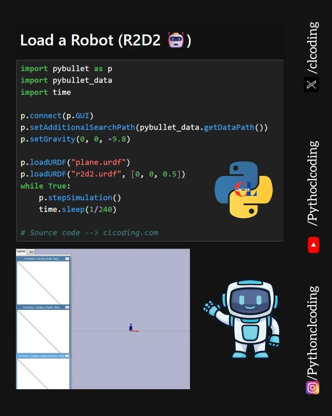 r2d2 = p.loadURDF("r2d2.urdf", [0, 0, 0.5])