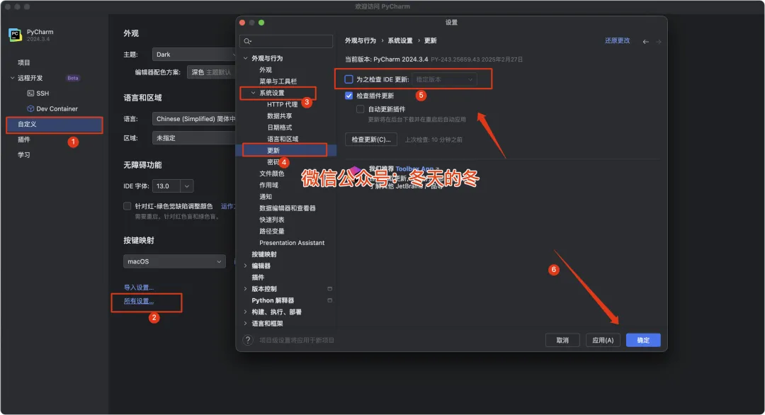 12、重启软件后,汉化已完成,在侧边栏点击【自定义】-【所有设置】-【系统设置】-【更新】,取消【自动检测更新】,然后点击【确定】;