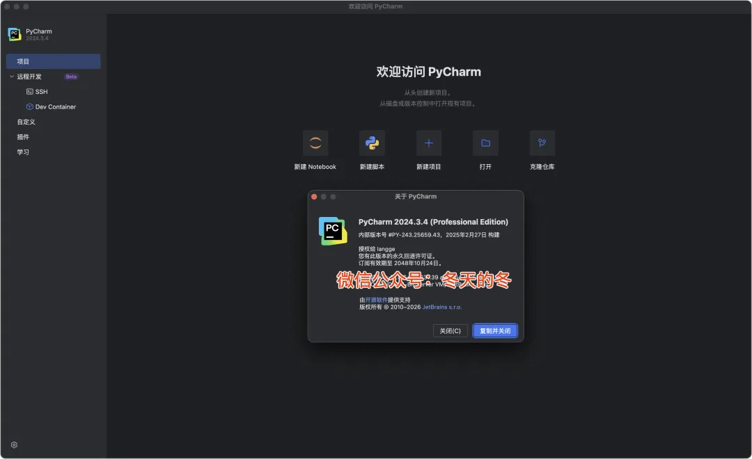 1、如果下面的链接失效或需要下载其他版本,可以关注本微信公众号,然后在后台回复:PyCharm 即可获取最新下载链接!