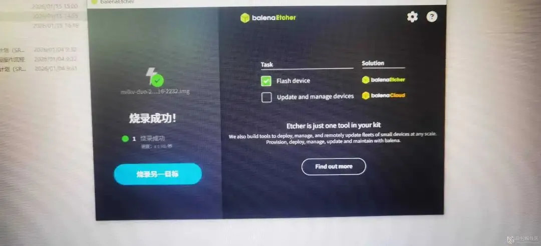 在网站上下载 balenaEtcher软件 ,使用 balenaEtcher 烧录镜像