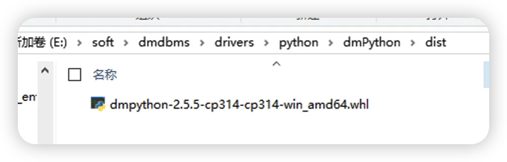 Windows 机器上安装达梦数据库(DM8 客户端或服务端均可),安装完成后,达梦的安装目录中会自带 dmPython 的驱动源码包。