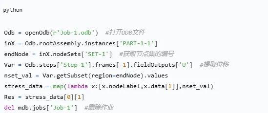 功能:从结果数据库文件(.odb)中提取特定数据(如最大应力、最大应变、位移等)。