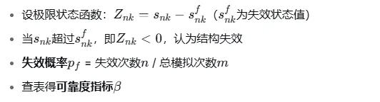 功能:基于Monte Carlo法计算失效概率和可靠度指标。