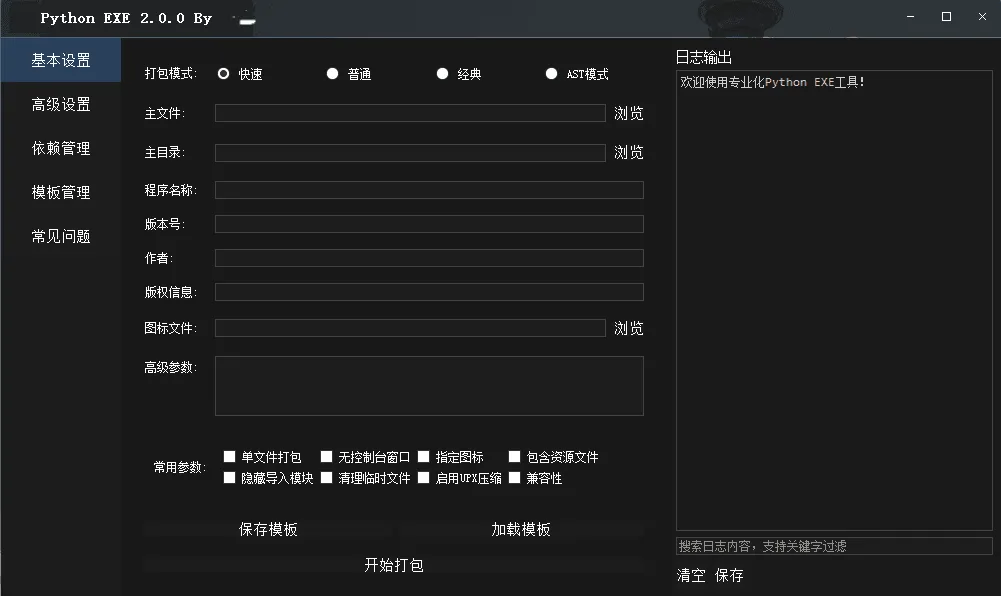 多模式与深度优化:提供“快速”、“普通”、“经典”、“AST”四种模式,满足从演示到分发的所有需求。更支持单文件打包、UWXP压缩、隐藏控制台等高级功能,直接产出最专业的exe。