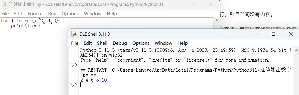 (3)end=" " 中两个引号之间为空格,表示以空格间隔两个数据,可以根据需要把空格换成逗号或其他符号。
