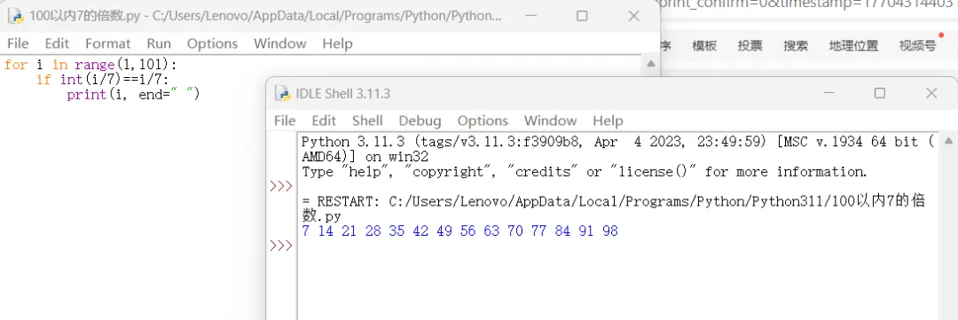 (2)循环体内的 print(i) 需要缩进一个 Tab 键的距离。