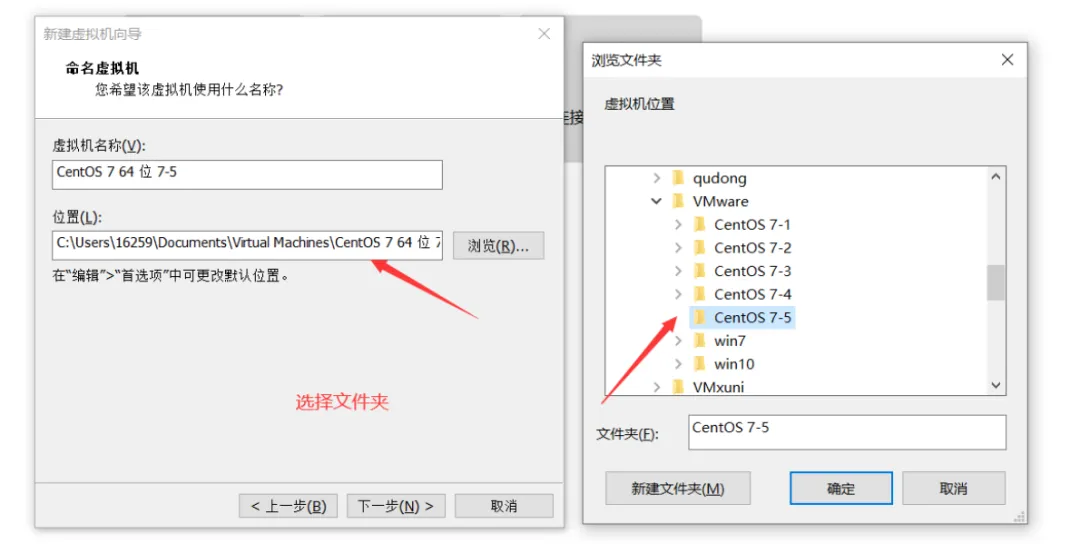 3. 填写虚拟机名称,选择安装位置(和VMware安装路径一致即可),点击“下一步”;