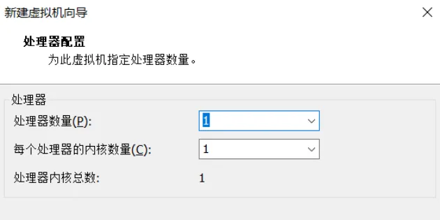 4. 设置处理器配置为“1”;内存设为”2048MB”;