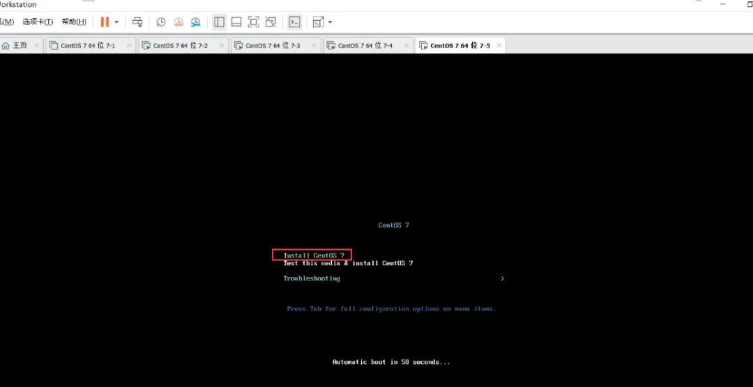 8. 安装界面弹出后,选择“Install CentOS 7”(用键盘上下键选择,回车确认);