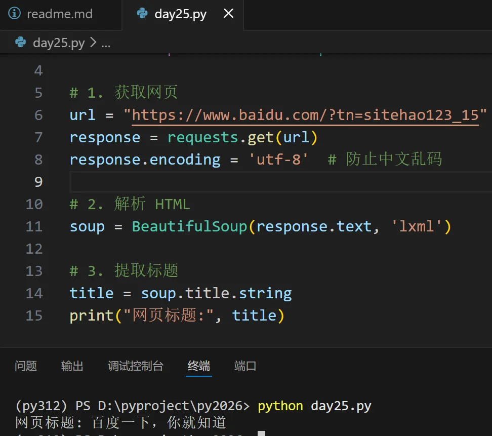 🔹 示例:提取网页标题