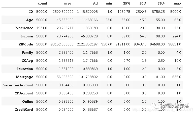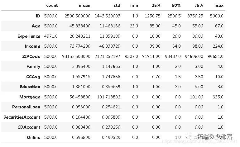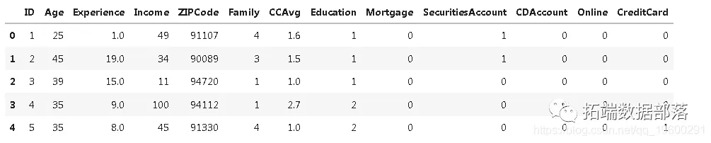 下面给出的文件包含5000个客户的数据(查看文末了解数据获取方式)。数据包括客户人口统计信息(年龄,收入等),客户与银行的关系(抵押,证券账户等)以及客户对上次个人贷款活动的因变量(个人贷款)。在这5000个客户中,只有480个(= 9.6%)接受了先前活动中提供给他们的个人贷款