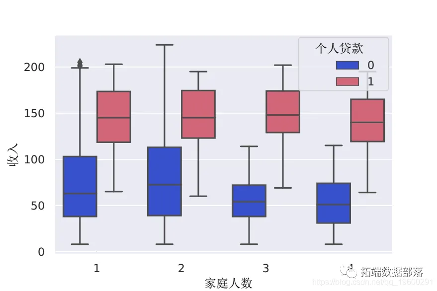 观察 :看来教育程度为1的客户收入更高。但是,接受了个人贷款的客户的收入水平相同