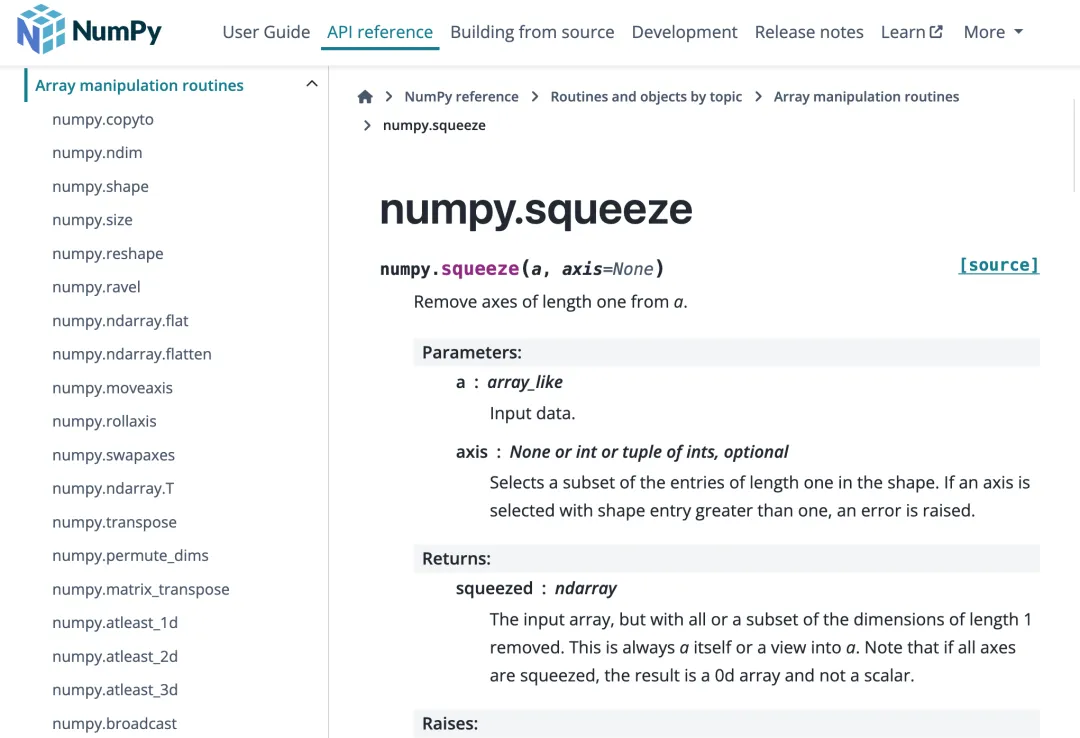 4. numpyAPI介绍:https://numpy.org/doc/stable/reference/generated/numpy.squeeze.html