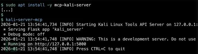 - 执行层:运行mcp-kali-server的Kali Linux主机(本地或云端部署),这个轻量级API桥接器将安全工具暴露给MCP客户端