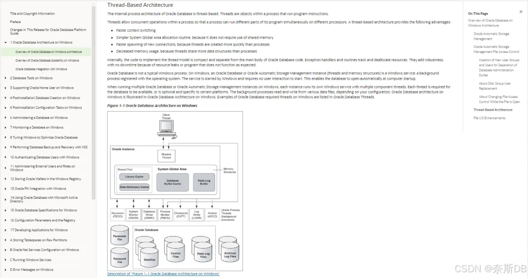 官方文档对于Oracle在Windows平台上单进程多线程架构的介绍(Oracle 12c):