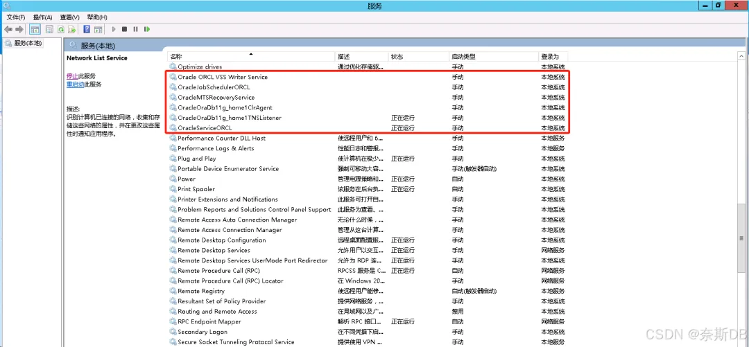 Oracle实例在Windows服务上运行(这是一个注册到操作系统的后台进程),该服务由Windows启动,无需用户交互即可启动。它包含访问数据库所需的内存结构和线程。